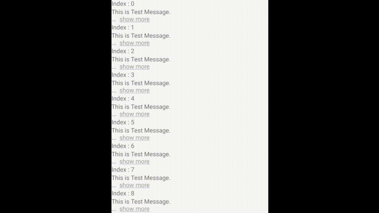 하지만 여기서 필요한 것은 '...' 뒤에 '더보기'가 붙어서 누르면 내용이 펼쳐지는 게 ExpandableTextView의 목적이기에 '...'이 생기는 시점에 글자를 추가해주면서 클릭이벤트도 넣어둔다.